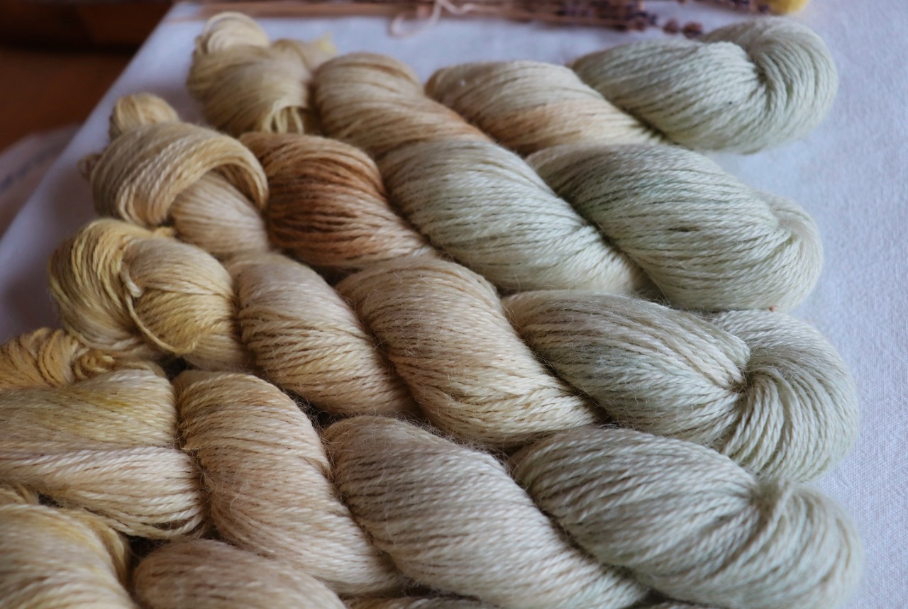 ※リンス替わりにクエン酸などの酸性のものにに漬けると化学反応で色がすっかり抜け落ちてしまう場合がございます。(重曹を使って抽出した染液を使った場合にこう言った現象が起こります)